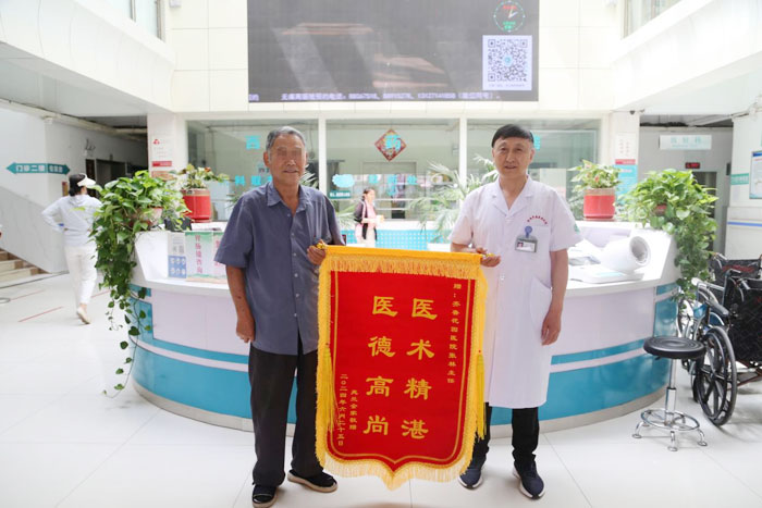 近几个月定期来找张林主任做复诊和康复,目前身体已完全康复,“看病遇到一个好医生真的很安心”,6月24日下午,杨女士的老伴手握锦旗激动地讲到:“张主任工作认真负责,医术精湛,我和家人真心感谢这位妙手回春的好医生!”